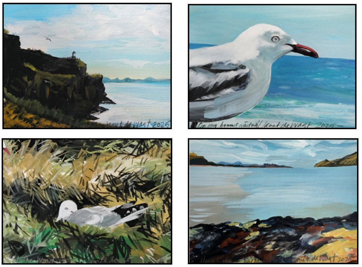 Paper Audit is a collection of mini paintings on paper covering a variety of landscapes in the Otago and Southland area – painted in situ by Janet de Wagt.