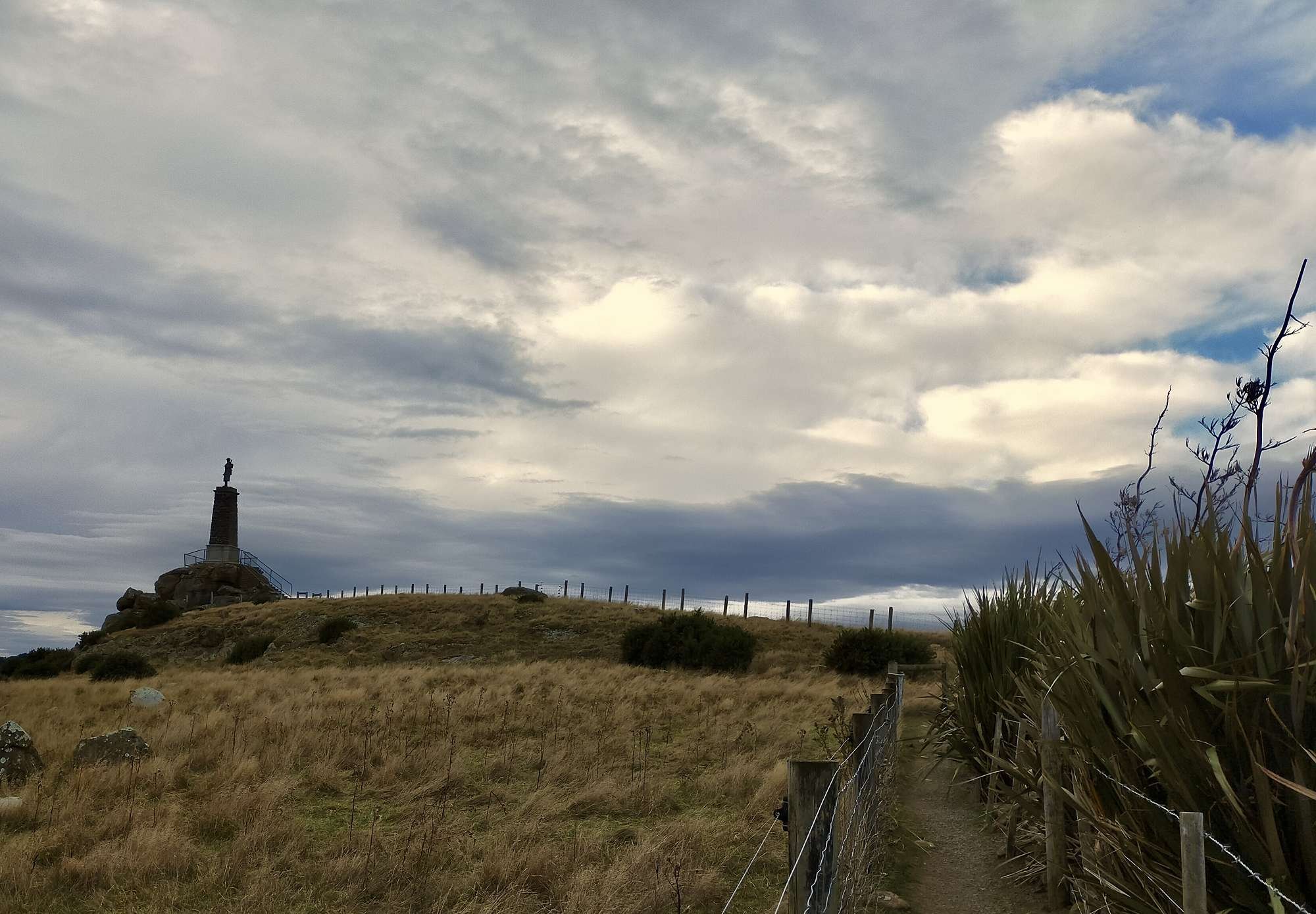 As you walk or drive down Dunedin’s Stuart St, pause at the Moana Pool lights and look towards Otago Peninsula to the left. Where the housing runs out look up to the ridge and you’ll see a pinhead blip on the horizon. Locally known as the Soldiers’ Monument, this landmark can be seen from all over Dunedin.